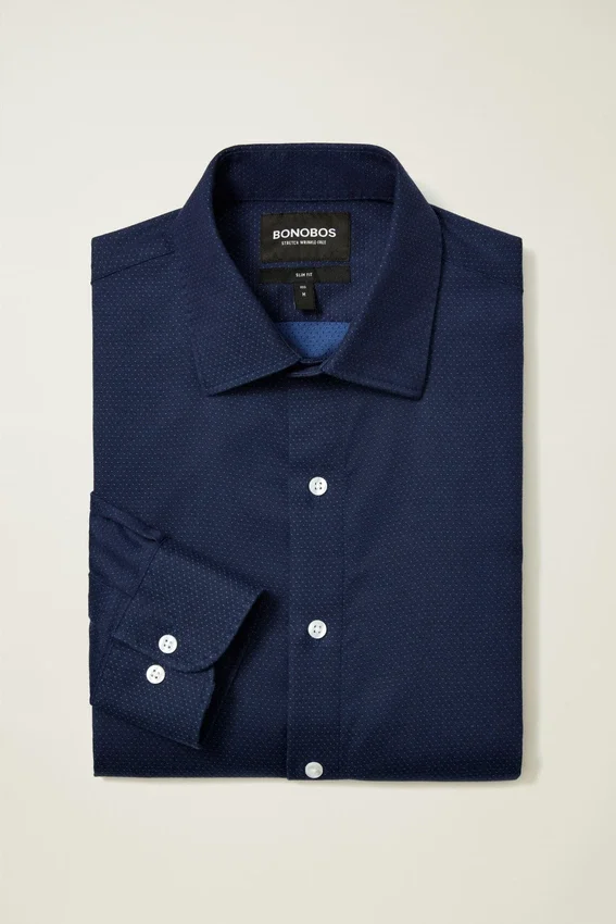 Besoin d’une chemise boutonnée pour le bureau et pour sortir le soir ? Découvrez la chemise « Desk to Dinner » de Bonobos ! Une chemise habillée qui est tout aussi élégante portée par-dessus le pantalon !
