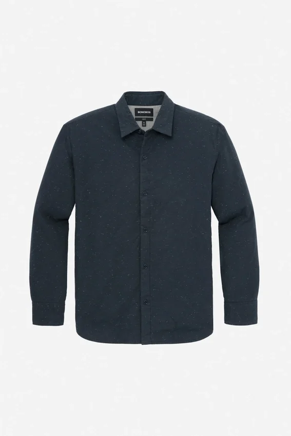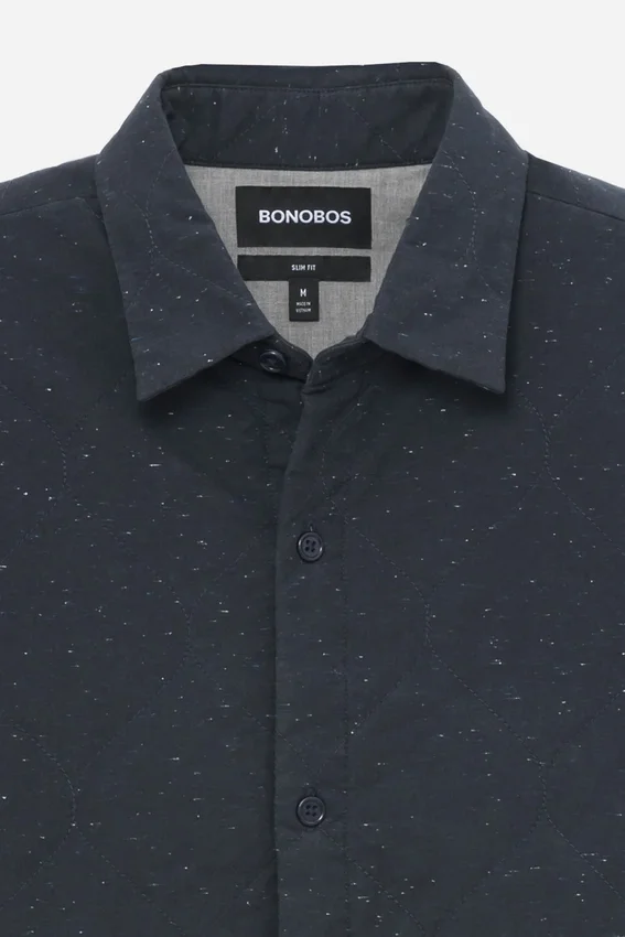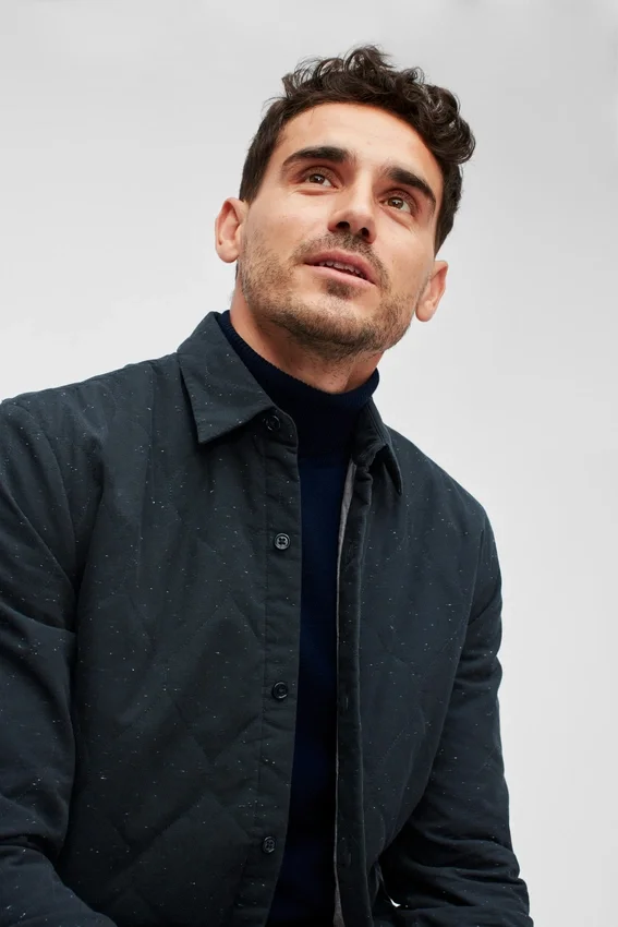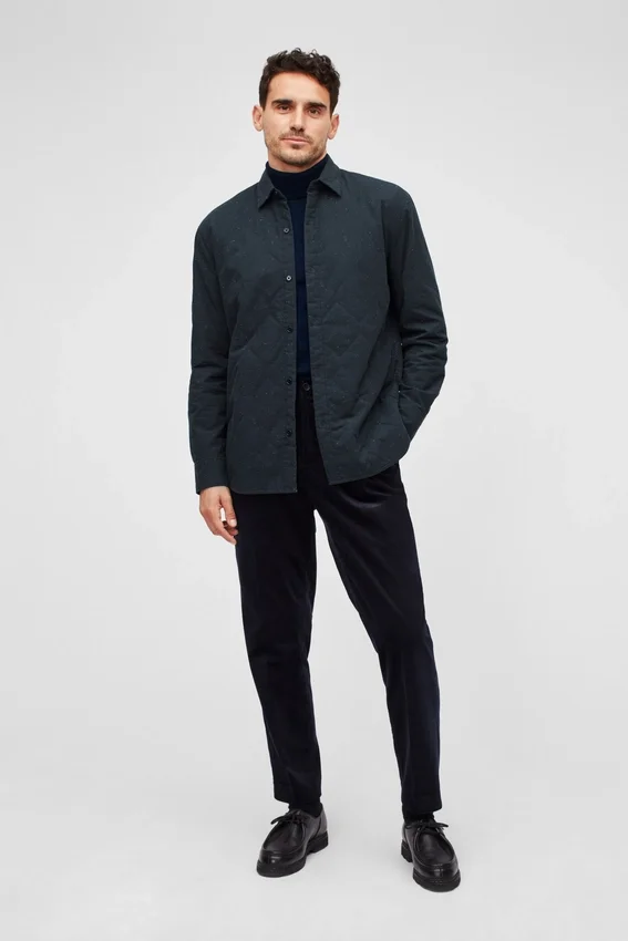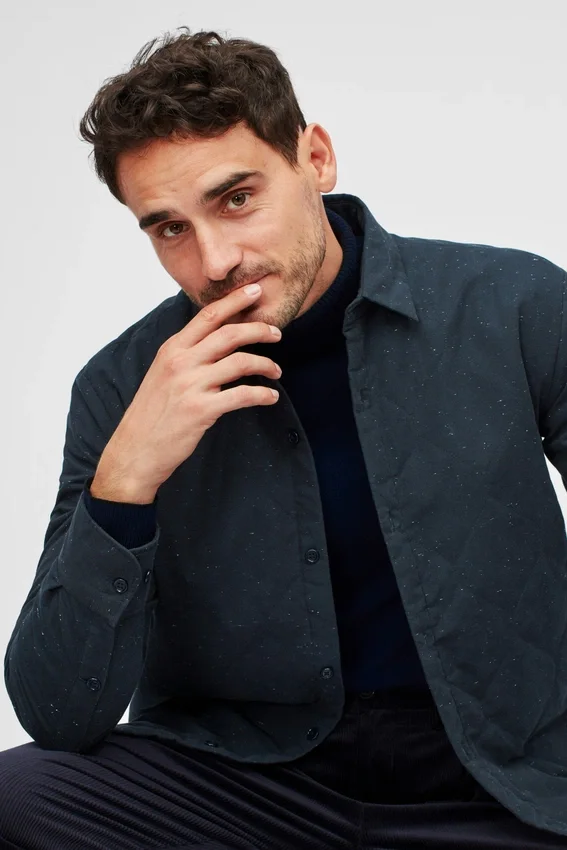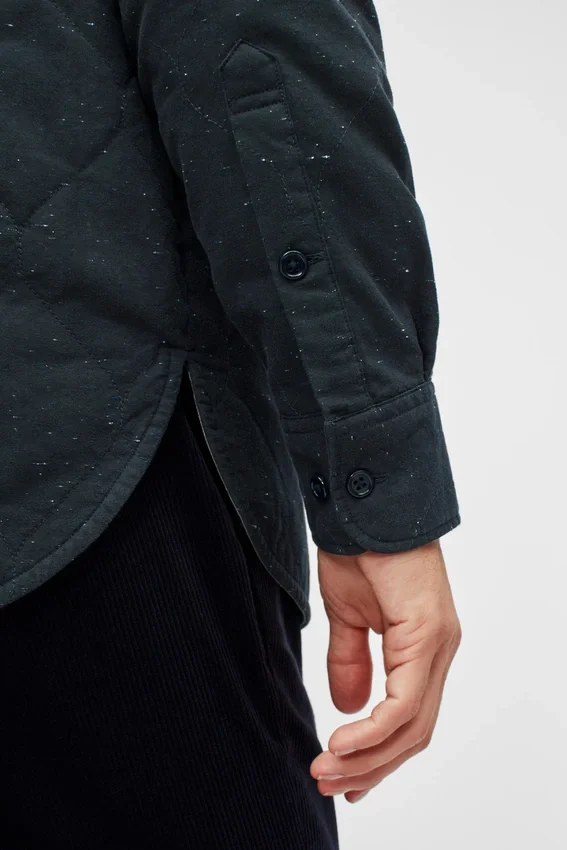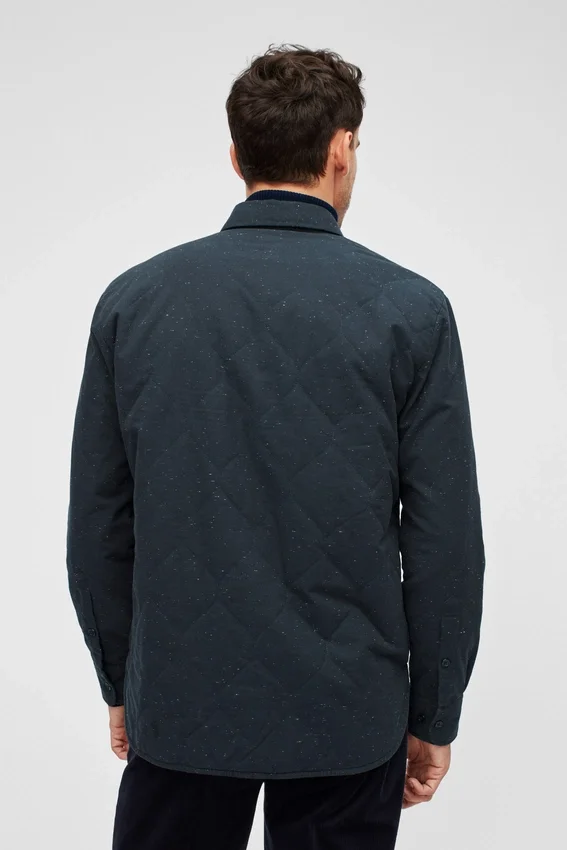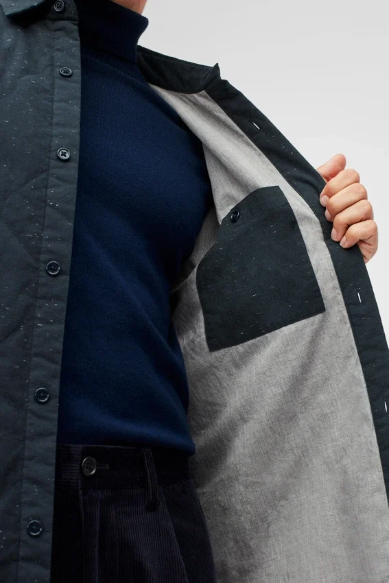 Veste légère | Extérieur en tissu Donegal matelassé | Intérieur gris contrasté doux | Col en pointe | Poche poitrine intérieure avec fermeture à bouton, même tissu que l’extérieur