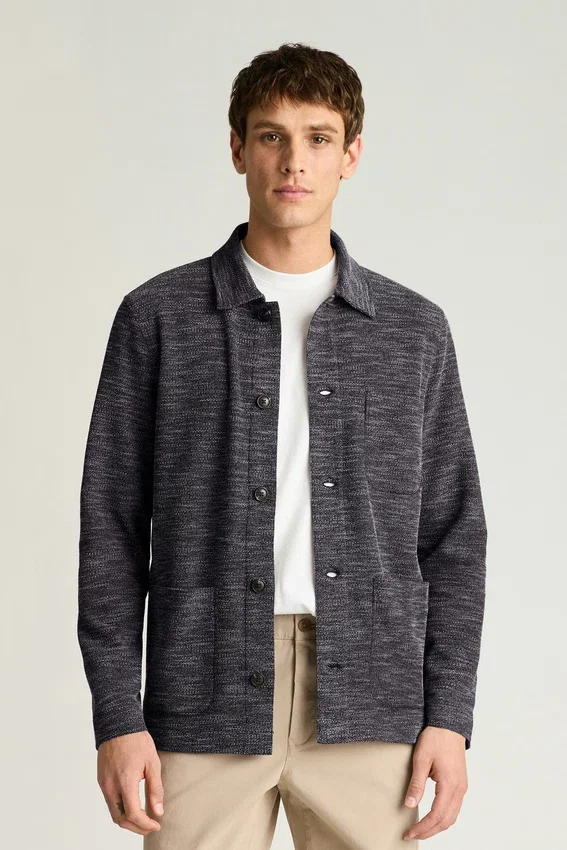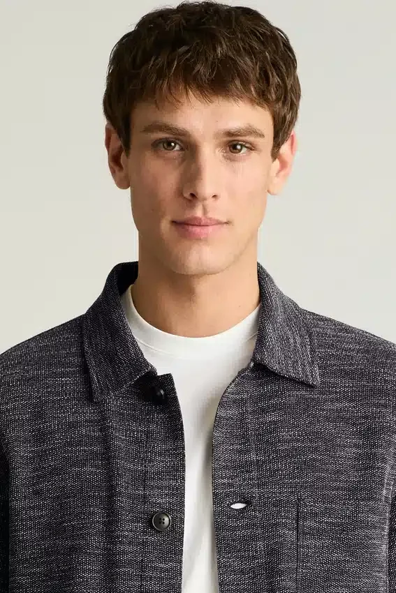Tissu chiné bicolore fabriqué en Italie | Sans doublure | Poche poitrine et poches arrière | Fermeture à boutons