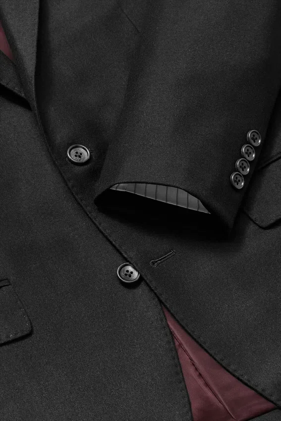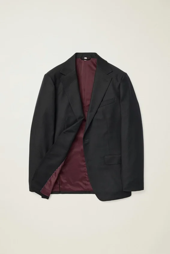 Tissu Marzotto | Revers en V | Fermeture à deux boutons | Surpiqûres au col, sur les revers et sur les rabats de poches | Intérieur entièrement doublé | Doublure aux manches | Poches à rabat à la taille | Poche poitrine | Poches intérieures | Fentes arrière