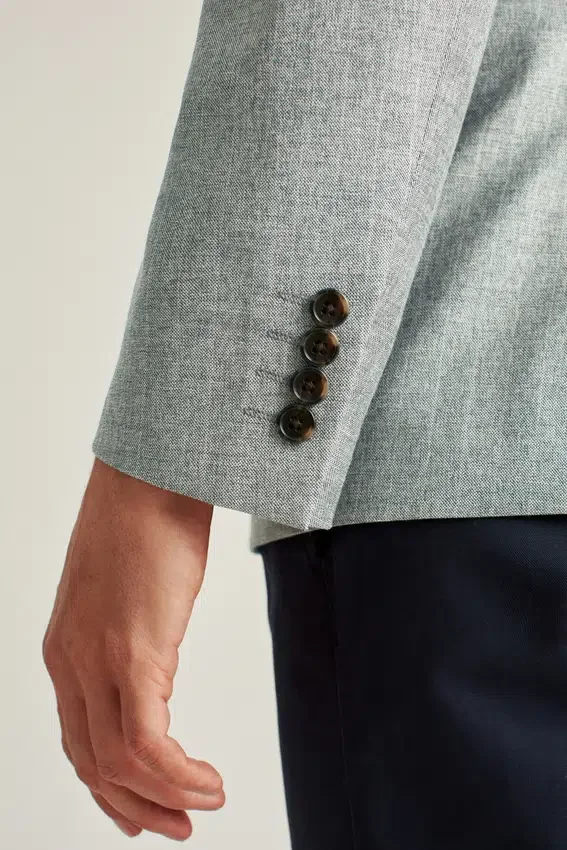 Caractéristiques de la veste : Revers cranté | Poches à rabat | 2 boutons, simple boutonnage | Intérieur entièrement doublé | Poches passepoilées intérieures | Boutons décoratifs aux poignets | Feutre sous le col | Double fente | Coupe légère