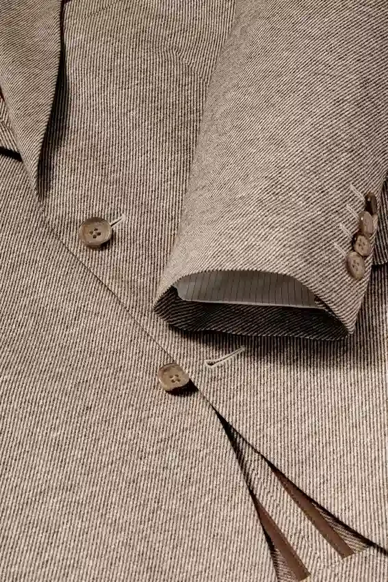 Tissu provenant de l’usine Maggia en Italie | Poches à rabat | Partiellement doublé en coton léger | Boutons décoratifs aux poignets | Doublure aux manches | Double fente | Poches intérieures et boucle de suspension