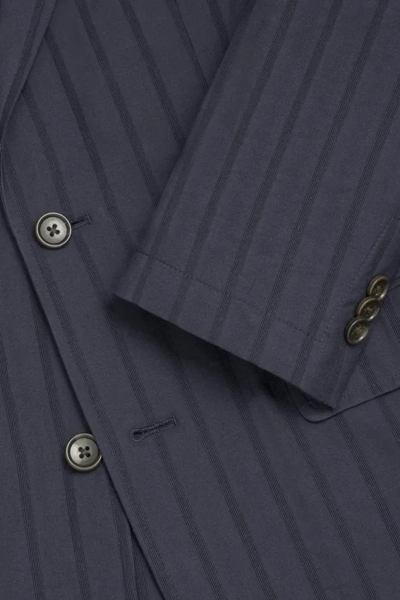 Revers de 8,25 cm | Poches à rabat | Croisé simple à deux boutons | Partiellement doublé | Doublure aux manches | Boutons décoratifs aux poignets | Double fente | Coupe légère | Poches plaquées intérieures | Boucle de suspension
