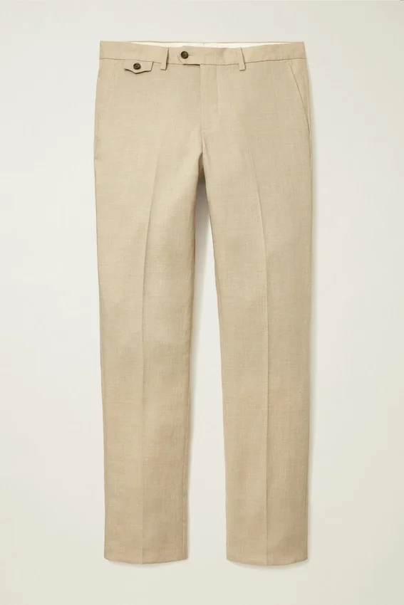 Le mannequin mesure 1,88 m et porte un pantalon taille 32 en coupe Slim Fit. Le pantalon de costume est livré non ourlé, avec une longueur d’entrejambe de 94 cm.