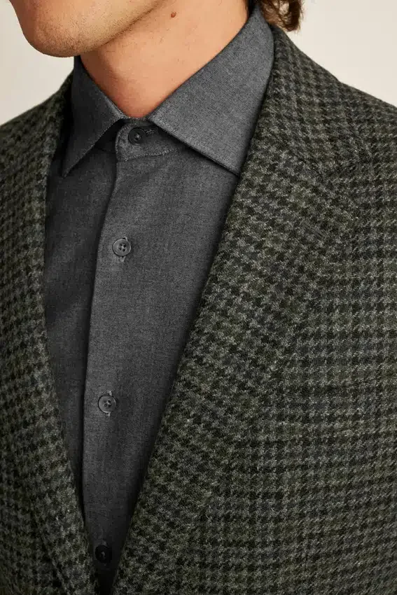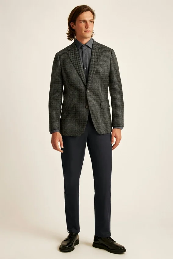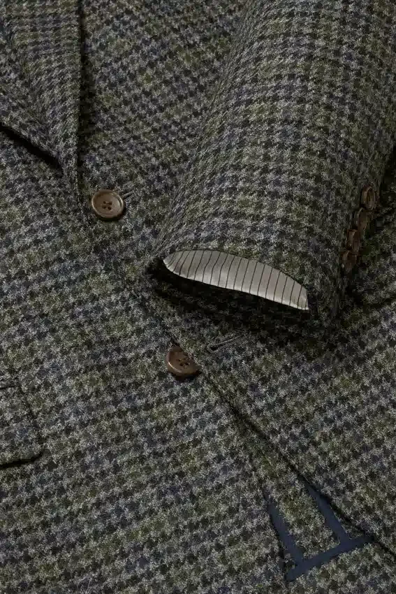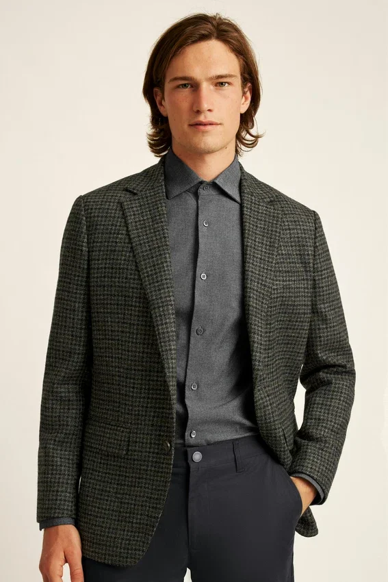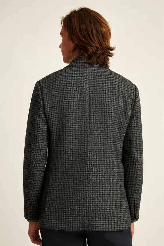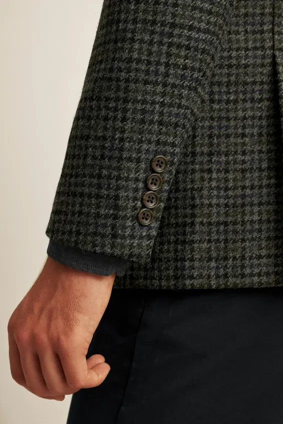 Tissu Abraham Moon | Revers en V | Poches à rabat | 2 boutons, coupe droite | Intérieur non doublé avec bordure aux coutures | Doublure aux manches | Boutons décoratifs aux poignets | Double fente | Coupe légère | Poches intérieures et boucle de suspension