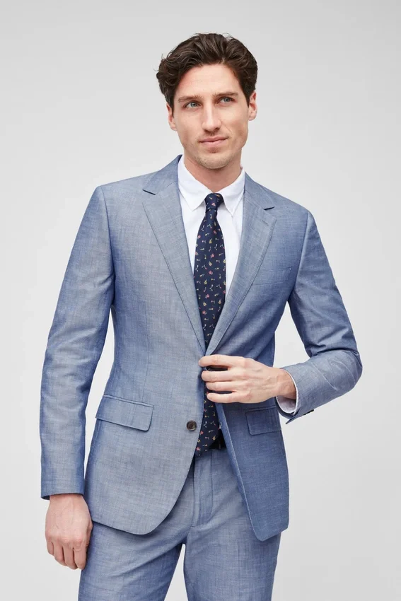 Caractéristiques de la veste : Revers cranté de 8,25 cm | Partiellement doublée | Poches à rabat | 2 boutons, simple boutonnage | Boutons non fonctionnels aux poignets | Double fente | Coupe légère | Sous-col en feutre | Boucle de suspension | Poches passepoilées intérieures