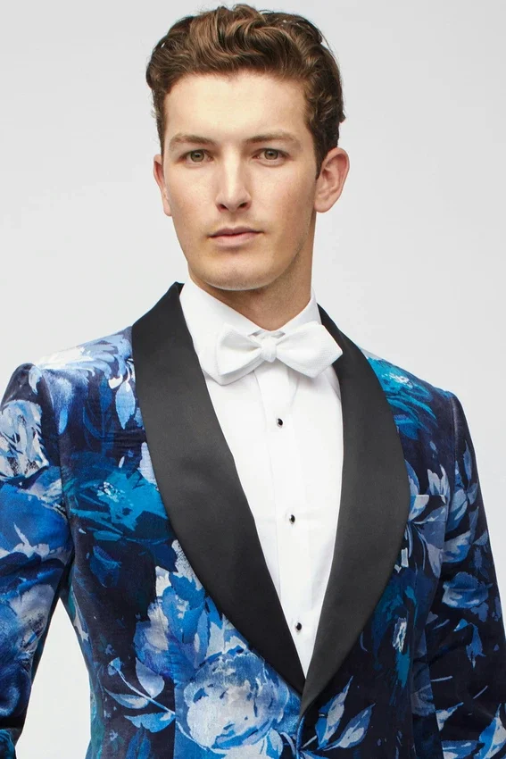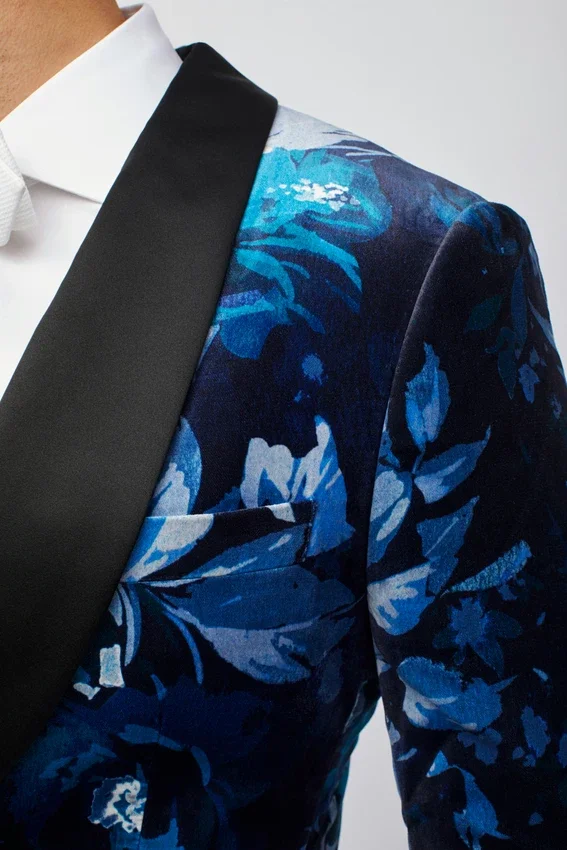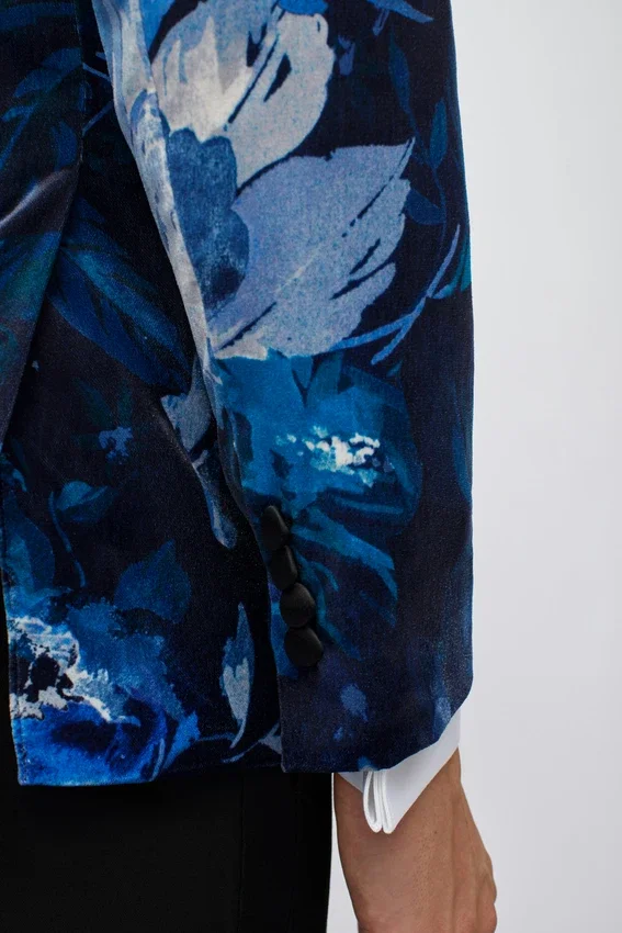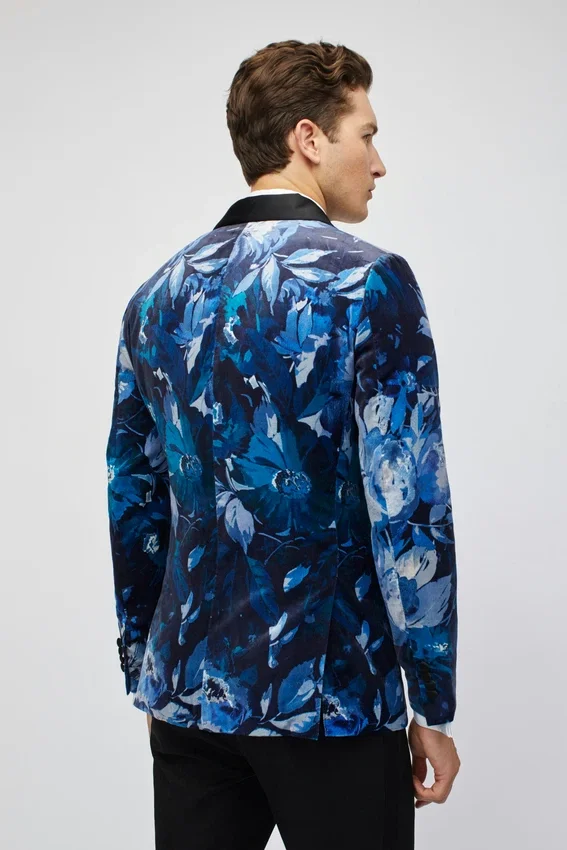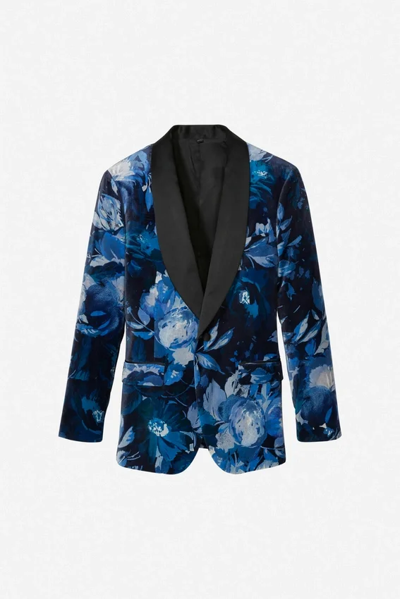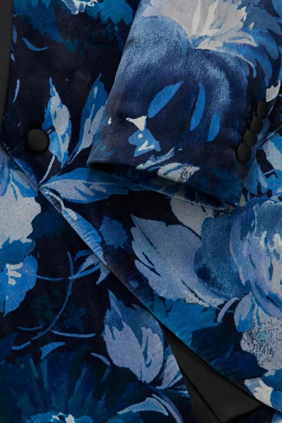 Jude Velvet Col châle bleu à fleurs
