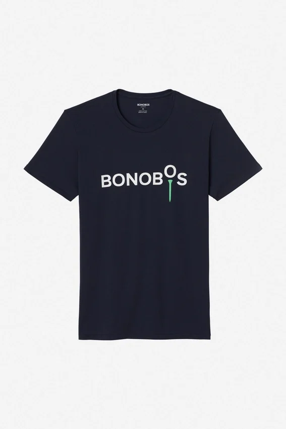 Coupe classique de t-shirt en 100 % coton. Disponible en bleu et en blanc. Orné du logo Bonobos avec une balle de Golf à la place du O. Livraison gratuite !