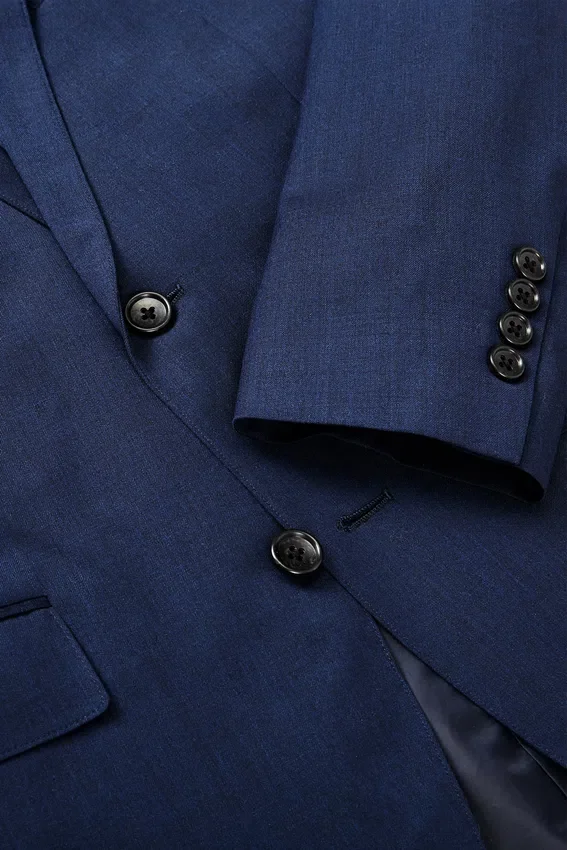 La veste présente un revers cranté moderne. Elle est dotée d’une fermeture à deux boutons, de deux fentes, de poignets à boutons non fonctionnels, d’une doublure en Bemberg et d’une poche intérieure pour passeport, idéale pour vos voyages. Le pantalon présente une fermeture classique à crochet et barre ainsi que des poches arrière à boutons.