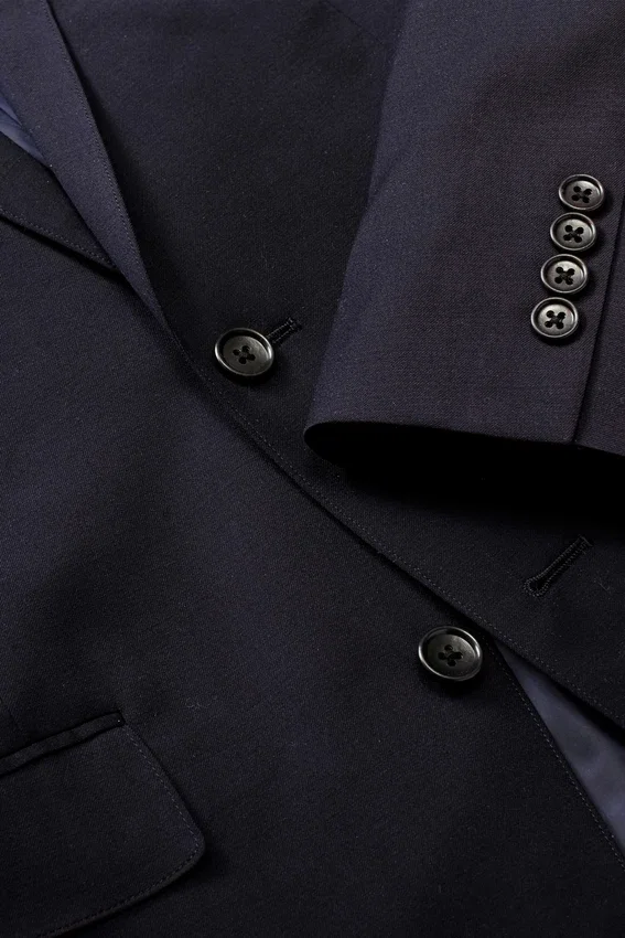 La veste présente un revers cranté moderne. Elle est dotée d’une fermeture à deux boutons, de deux fentes, de poignets à boutons non fonctionnels, d’une doublure en Bemberg et d’une poche intérieure pour passeport, idéale pour vos voyages. Le pantalon présente une fermeture classique à crochet et barre ainsi que des poches arrière à boutons.
