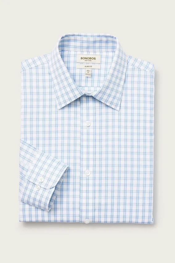 Boutons de col Bonobos emblématiques | Poignets à double bouton | Col en pointe | Finition sans formaldéhyde et infroissable