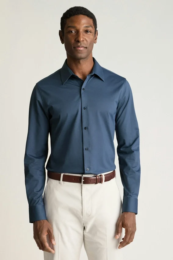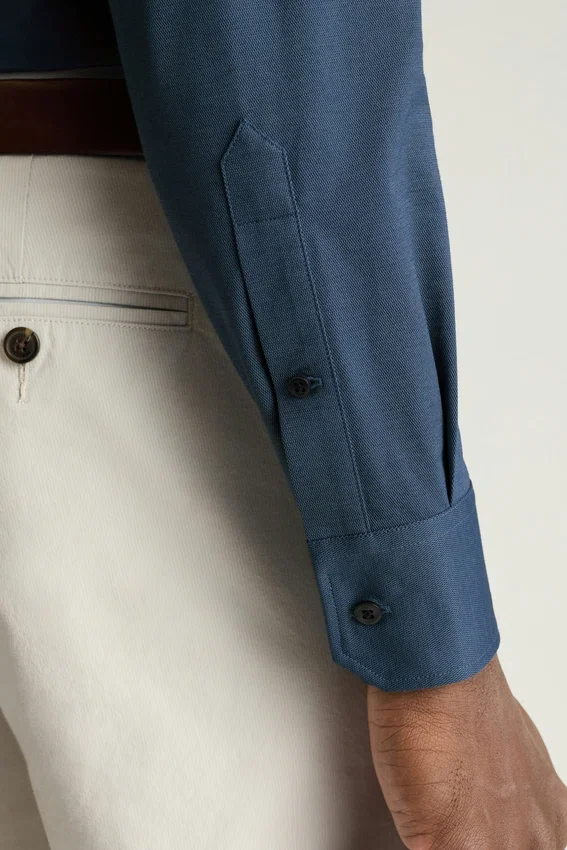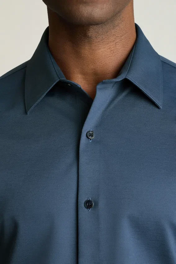Col semi-étalé | Patte de boutonnage à la française et poignets en onglet | Baguettes de col amovibles | Les fibres Coolmax® aident à réguler la température corporelle par temps chaud comme par temps froid | Évacue la transpiration et permet la circulation de la chaleur