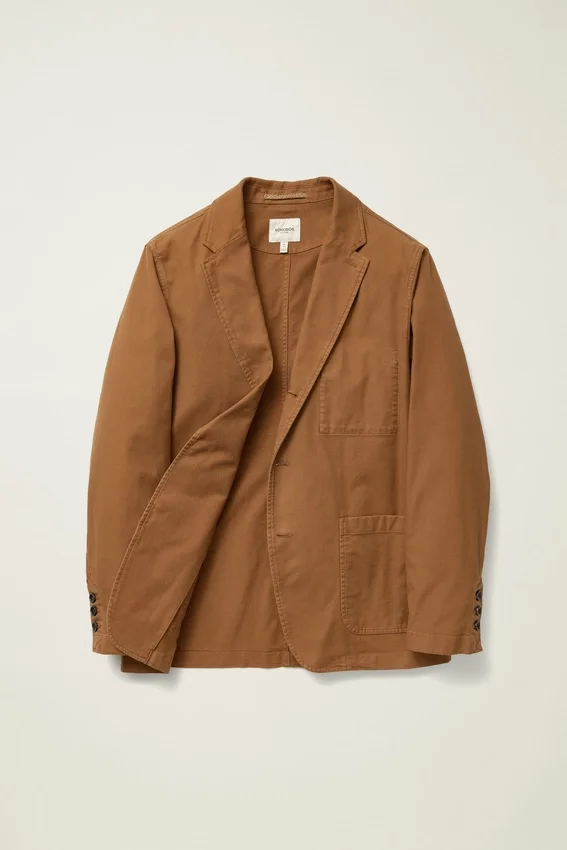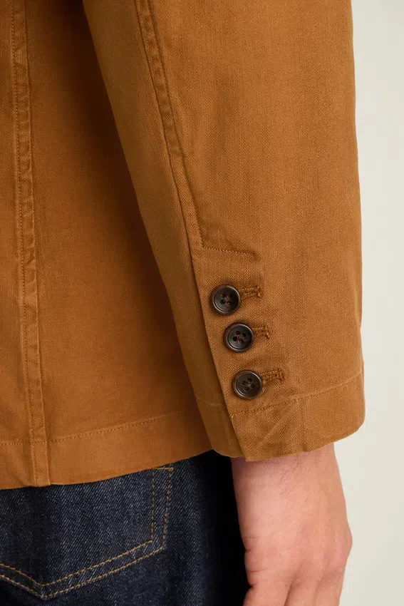 Revers cranté | Coupe à trois plis et deux boutons | Entièrement non doublé et Unconstructed | Poches plaquées à la taille | Poche intérieure | Boutons de manchette fonctionnels | Boucle de suspension intérieure