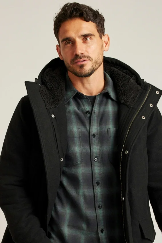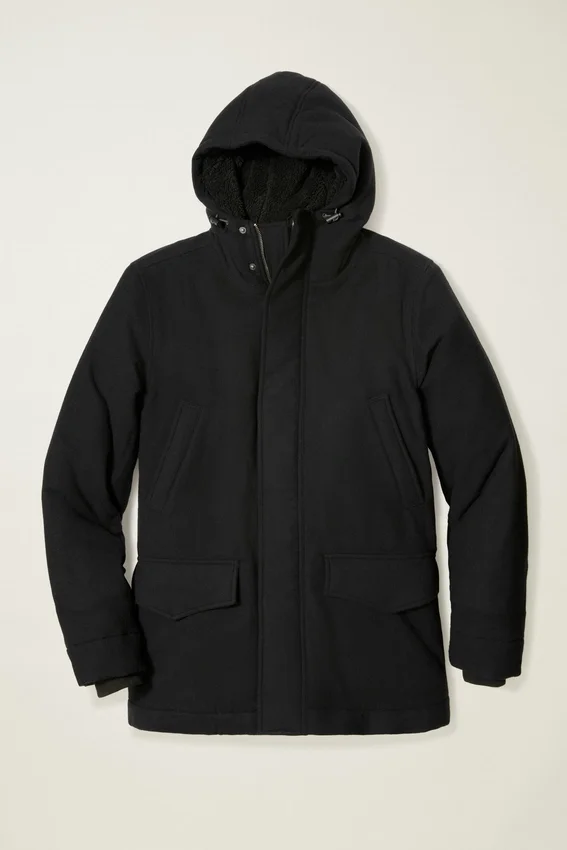 Une laine raffinée et résistante à l’eau pour la meilleure parka de l’hiver. Capuche doublée en polaire et nombreuses poches.