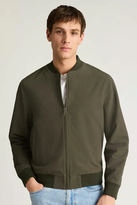 Style bomber classique avec col, poignets et ourlet | Poches passepoilées simples avec bouton-pression | Hydrofuge | Entièrement doublé