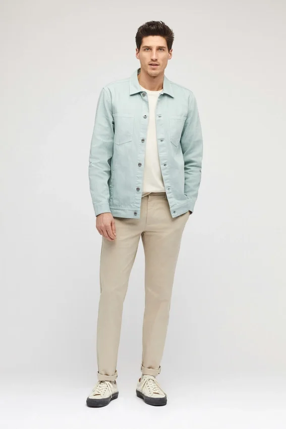 Le mannequin mesure 1,88 m, a un tour de poitrine de 102 cm et porte une taille M en coupe Slim Fit.