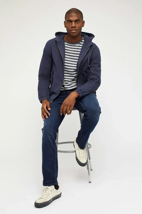 Le mannequin mesure 1,88 m, a un tour de poitrine de 102 cm et porte une taille M en Slim Fit.