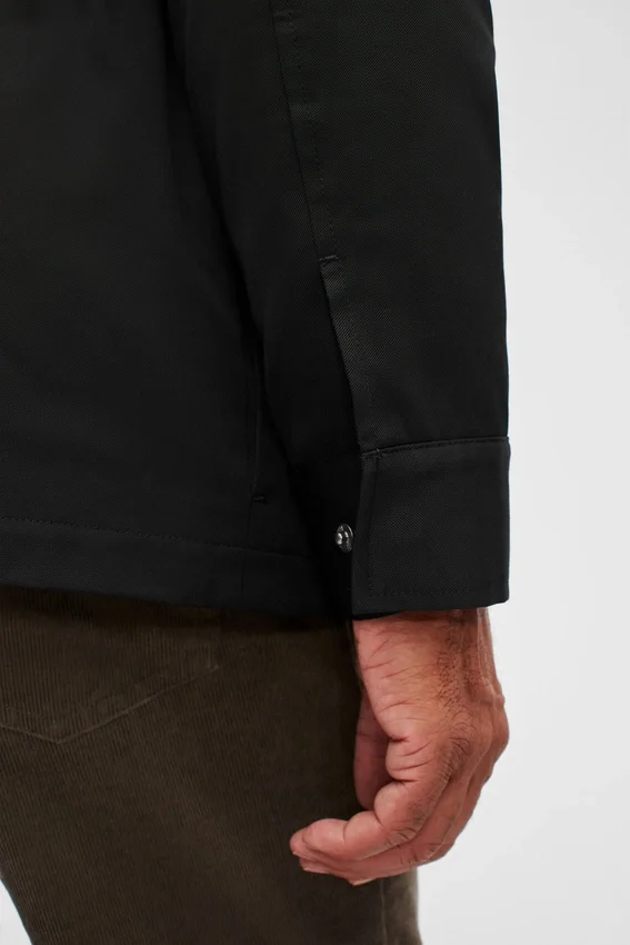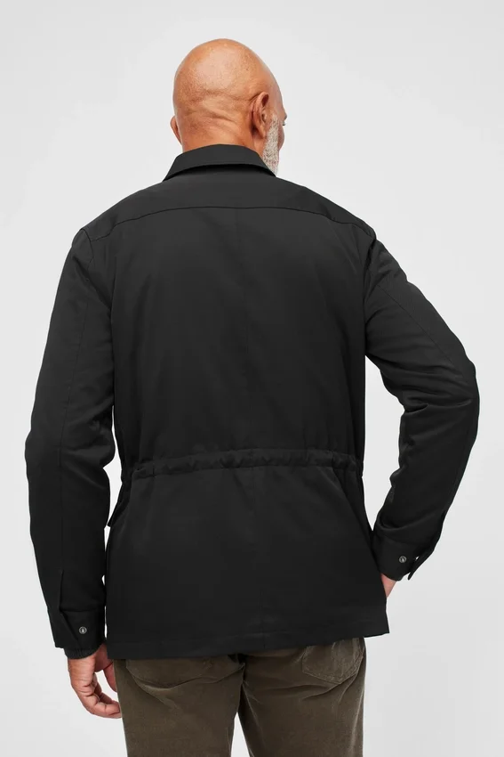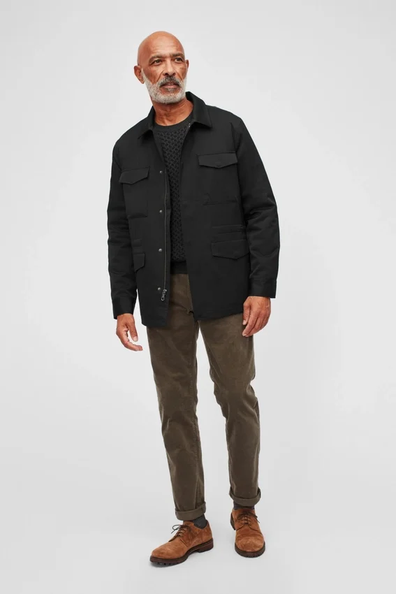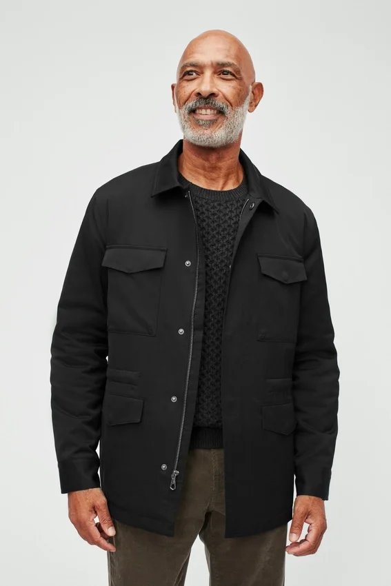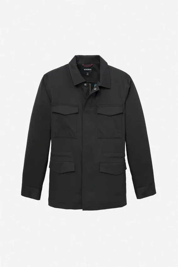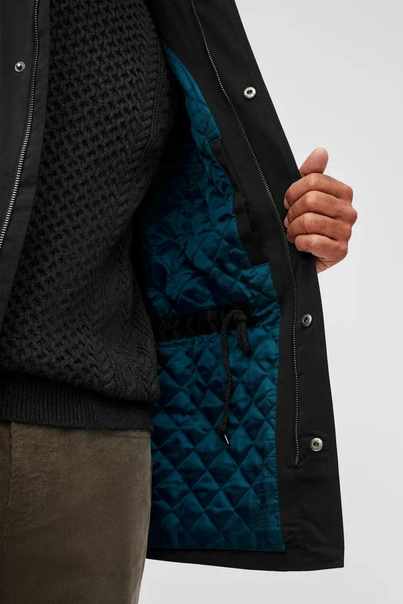 Fermeture à glissière sur le devant avec rabat anti-tempête à boutons-pression cachés | L’intérieur entièrement matelassé permet de porter cette veste pendant les mois les plus frais | Les poches offrent un excellent espace de rangement sans ajouter de volume, préservant ainsi un look minimaliste et fonctionnel | Cordon de serrage intérieur et poches à boutons-pression cachés | La silhouette classique d’inspiration militaire est rehaussée par un tissu hydrofuge luxueux et des détails épurés et minimalistes