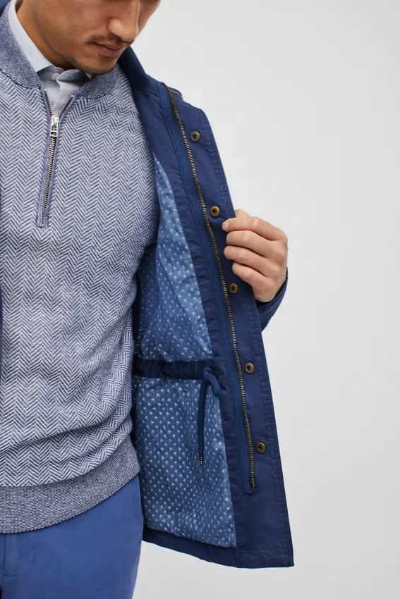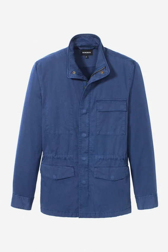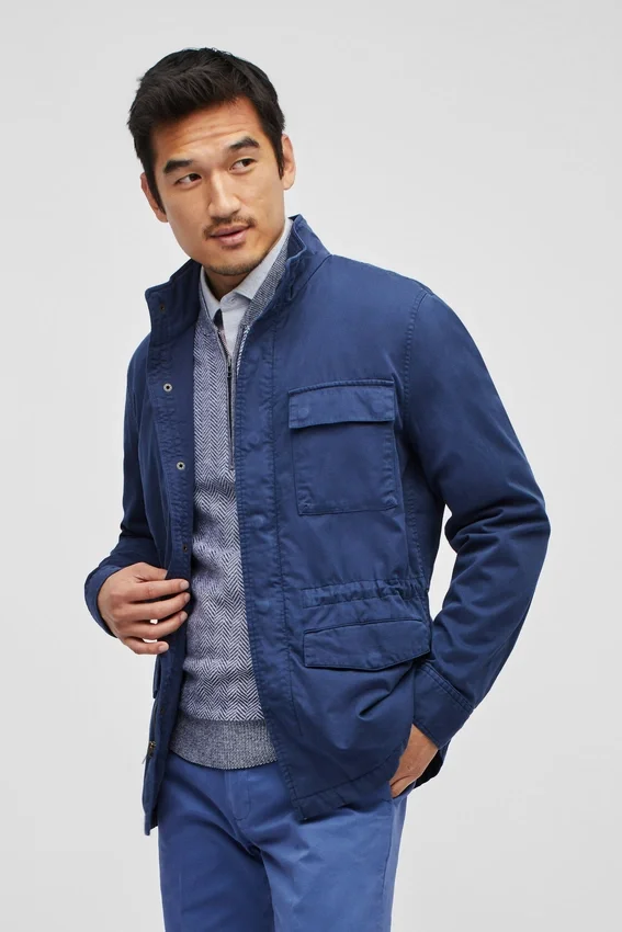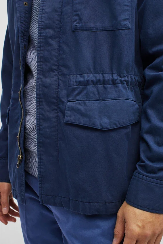 Design moderne de veste de terrain | Teint en pièce pour un look vintage | Poches extérieures avec boutons-pression | Poche plaquée intérieure | Cordon de serrage intérieur à la taille | Boutons-pression aux poignets | Boucle de suspension | Fermeture à glissière sur le devant avec boutons-pression cachés