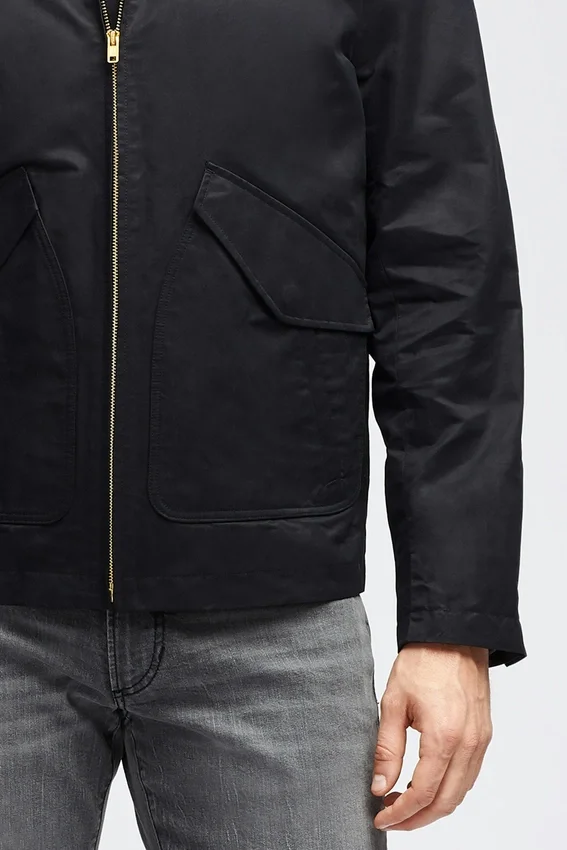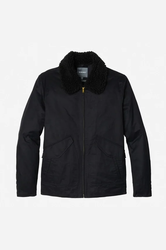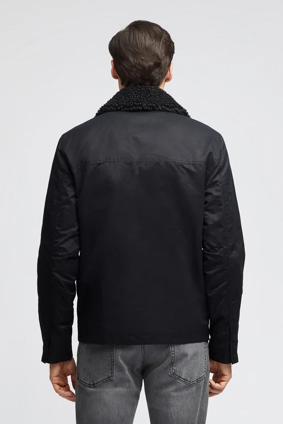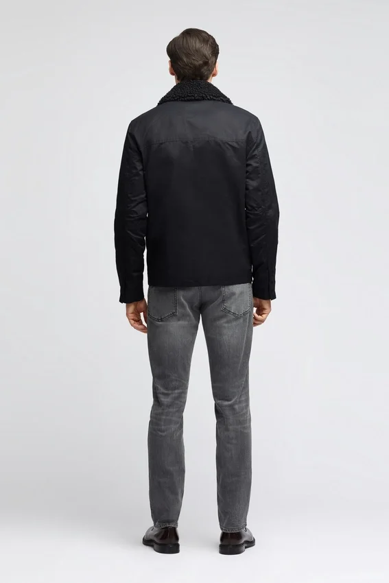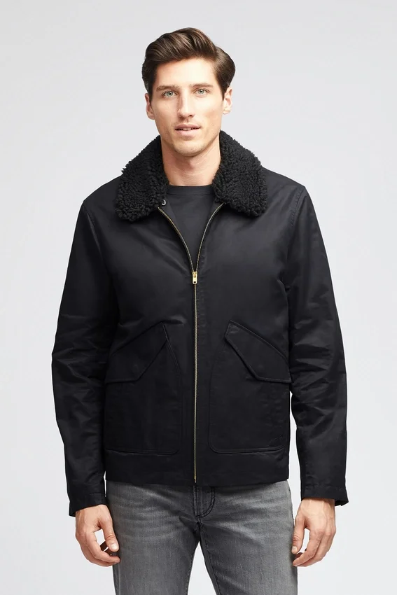 Entièrement doublée de flanelle | Manches doublées de polyester | Poches plaquées en biais avec une seule passepoil sur le côté | Manches articulées | Bouton-pression caché au poignet | Col en sherpa amovible | Poches intérieures à simple passepoil