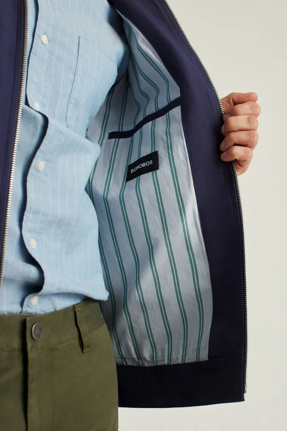 Entièrement doublée avec un motif à carreaux personnalisé | Fermeture à glissière sur le devant | Patte de boutonnage aux poignets | Patte de réglage sur la couture latérale de l’ourlet | Poches plaquées surdimensionnées sur la poitrine | Boucle de suspension