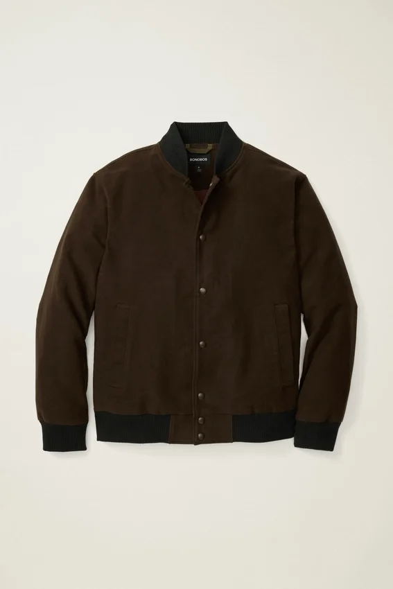La polyvalence et la respirabilité du coton. La douceur et le luxe du moleskine. Le tout dans un superbe blouson aviateur.