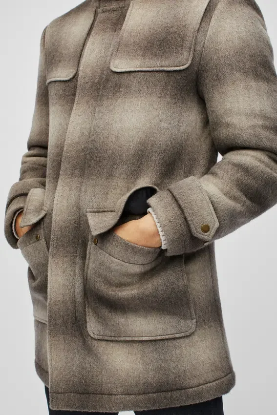 Le mannequin mesure 1,88 m, a un tour de poitrine de 102 cm et porte une taille M. Ce manteau est conçu pour une coupe confortable et taille normalement. Commandez votre taille habituelle de veste.