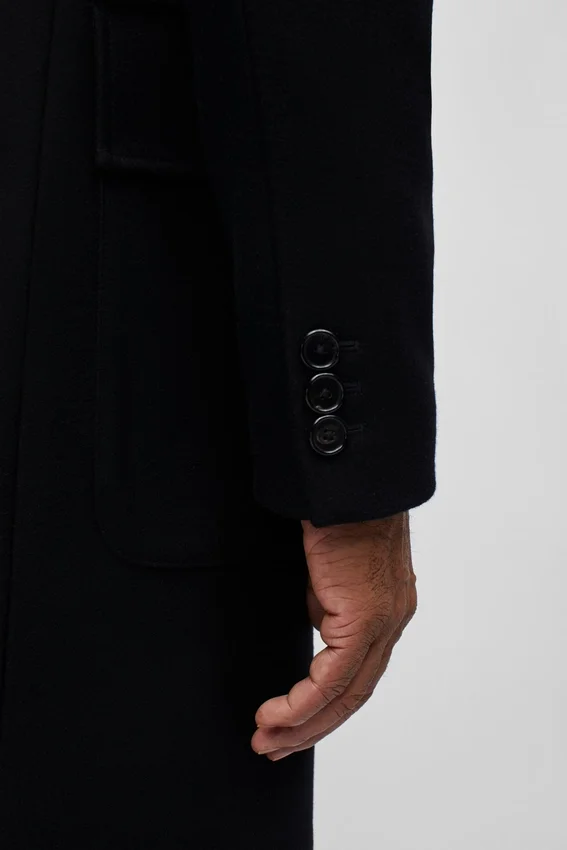 Le mannequin mesure 1,88 m, a un tour de poitrine de 102 cm et porte une taille 40R. Coupe : ce manteau est conçu pour une coupe décontractée. Choisissez une taille en dessous si vous préférez un manteau plus ajusté.