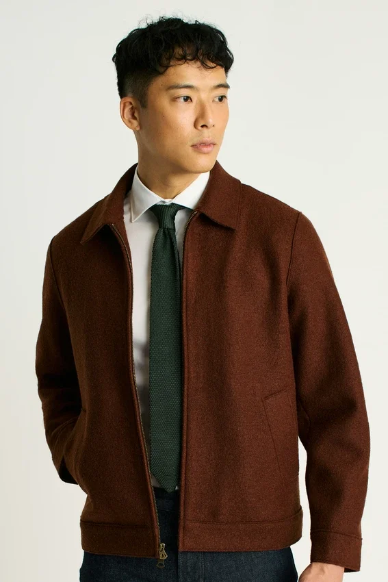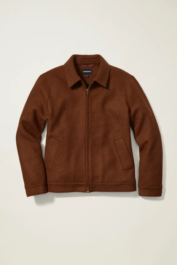 Restez au chaud et à l’aise dans la veste Deck en laine bouillie de Bonobos. Le savoir-faire italien rencontre un style robuste pour un mélange parfait de confort et de durabilité.