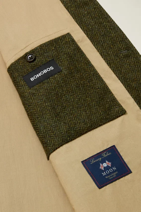 Confectionnée en laine tweed anglaise | Fermeture à boutons sur le devant et les manches | Poches plaquées | Poche intérieure | Boucle de suspension | Intérieur entièrement doublé
