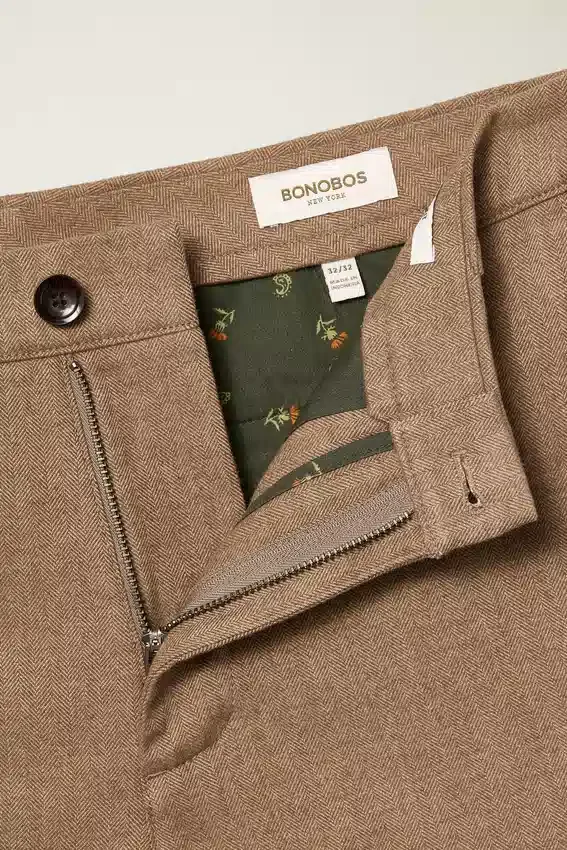 Le pantalon chino en chevrons brossé de Bonobos offre la douceur de la flanelle sans le poids. Un pantalon chino en chevrons confortable pour homme, conçu pour un look raffiné au quotidien.