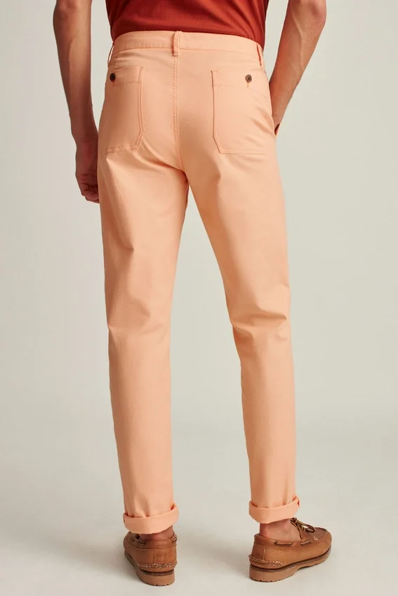 Un pantalon chino polyvalent, du printemps à l’été, qui convient aussi bien au travail qu’aux loisirs. Une touche d’élasticité pour plus de confort.