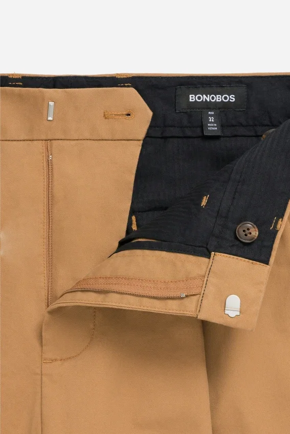 Même tissu en coton stretch que nos Stretch Washed Chinos | Ceinture profilée signature avec fermeture à crochet et barre | Poches arrière passepoilées avec boutons et rabats