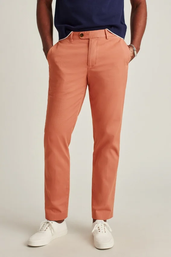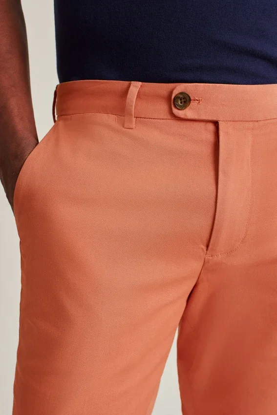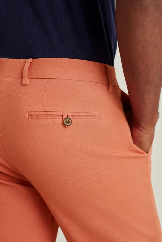 Chino haut de gamme teint en pièce en coton stretch italien | Patte et boutons allongés sur les poches arrière | Doublure intérieure discrète | Poche à monnaie