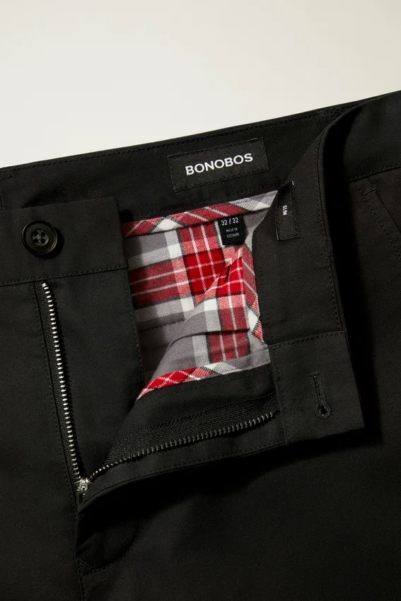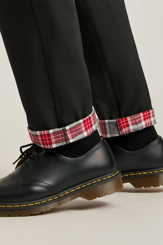 Tissu extérieur uni avec doublure à carreaux teints dans la masse inspirée des fêtes | Boutons en simili-corne | Braguette zippée avec fermeture à bouton | Poches à carreaux