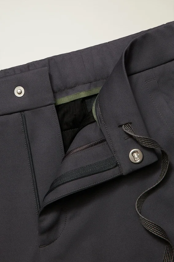 Pantalon polyvalent, du travail au week-end. Taille élastiquée avec braguette à fermeture éclair et boutons-pression cachés. Doux et extensible.