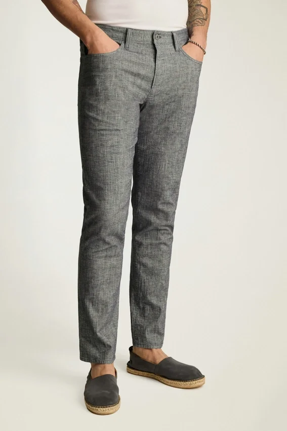 Le look et le confort ultimes, avec un mélange coton-lin extensible, dans une coupe jean classique.