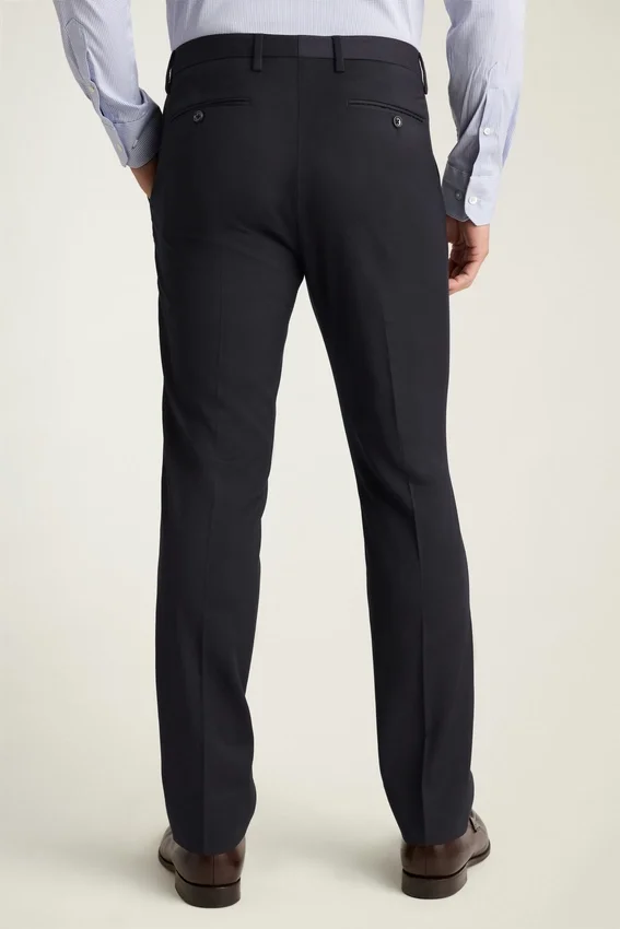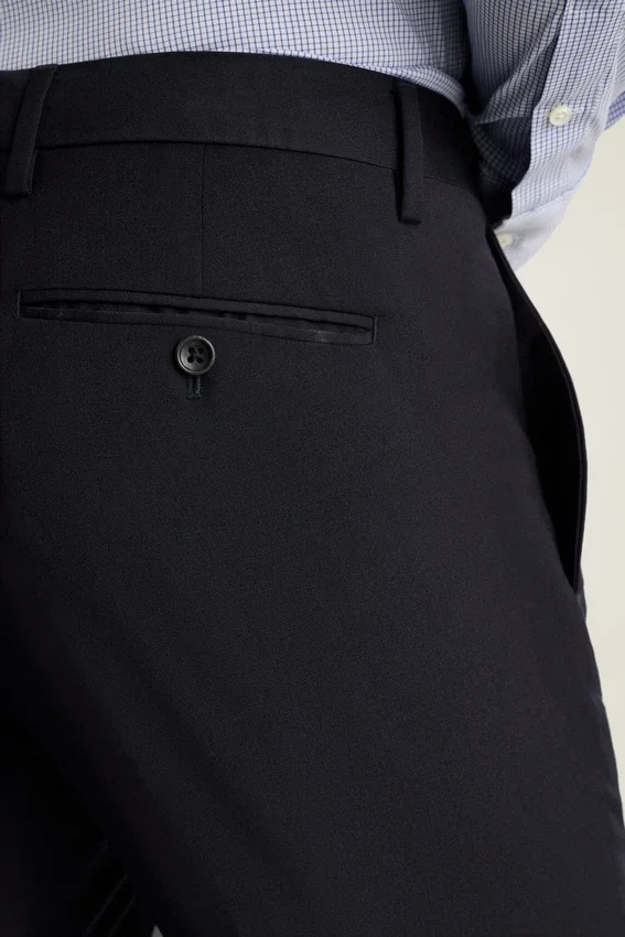 Ce pantalon est confectionné dans un tissu en laine stretch toutes saisons et est parfaitement soigné pour toutes les occasions. | Fermeture à crochet et barre | Poches arrière à boutons | Doublure sur le devant des jambes