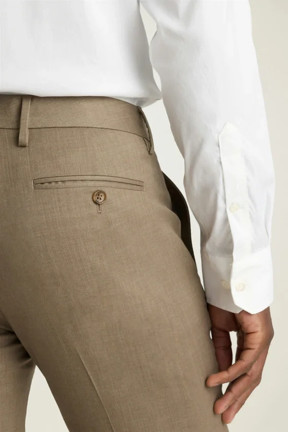 Ce pantalon est confectionné dans un tissu en laine stretch toutes saisons et est parfaitement soigné pour toutes les occasions. | Fermeture à crochet et barre | Poches arrière à boutons | Doublure sur le devant des jambes