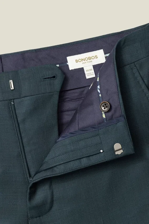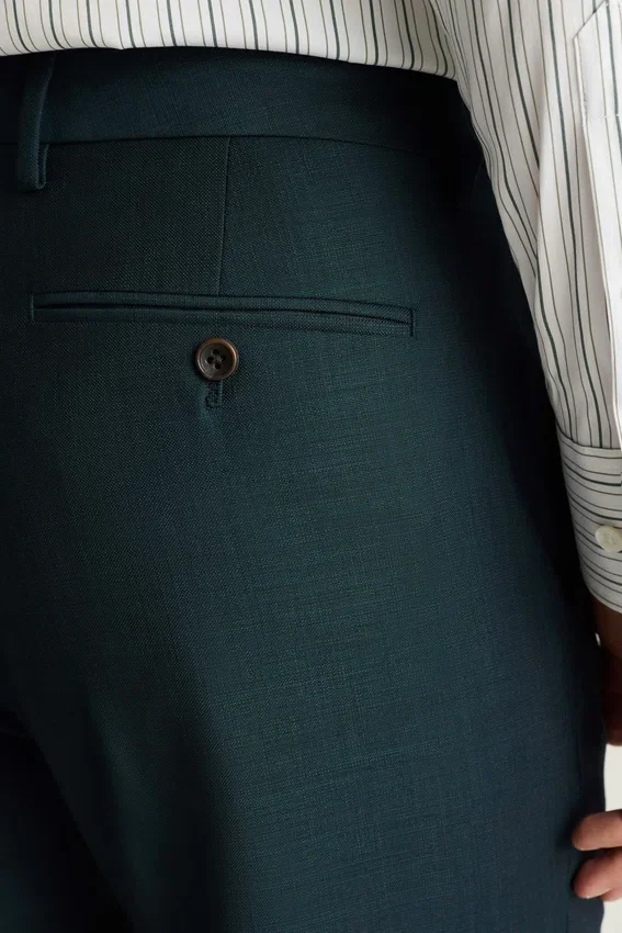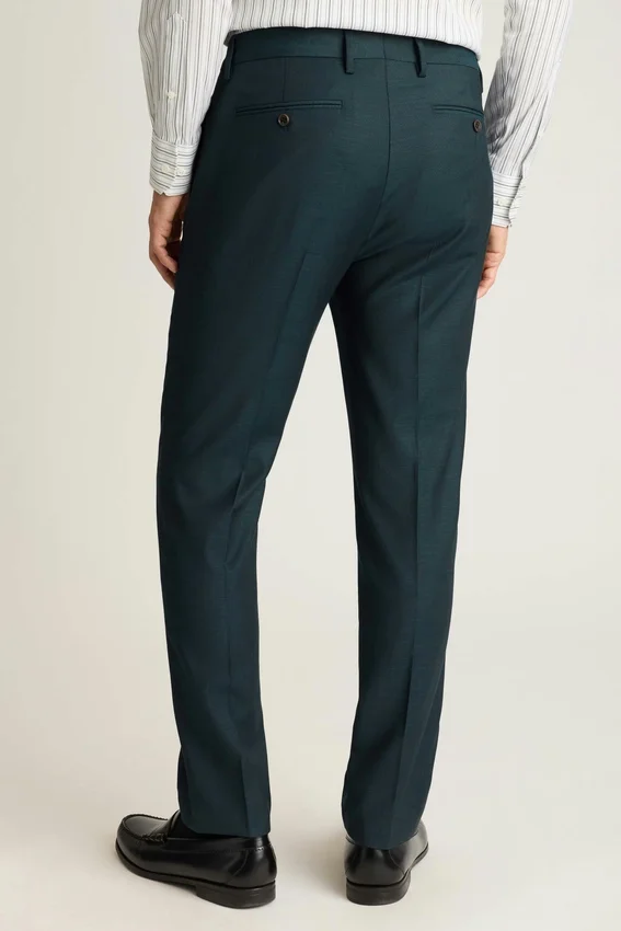 Ce pantalon est confectionné dans un tissu en laine stretch toutes saisons et est parfaitement soigné pour toutes les occasions. | Fermeture à crochet et barre | Poches arrière à boutons | Doublure sur le devant des jambes