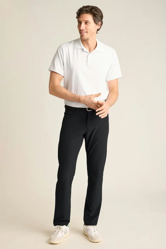 Le pantalon 5 poches Course Legend de Bonobos offre une grande élasticité et un style inspiré du denim. Un pantalon de Golf pour homme conçu pour les voyages, les week-ends et les parties sur le parcours.