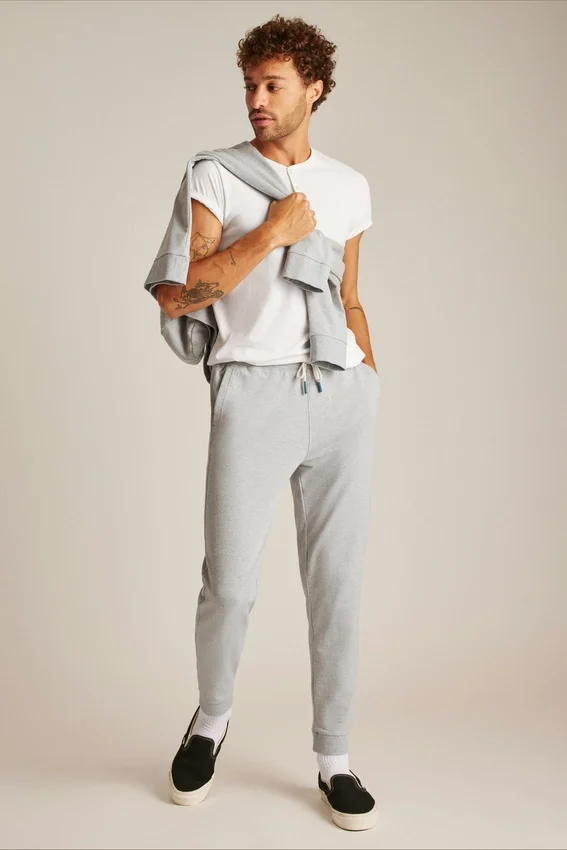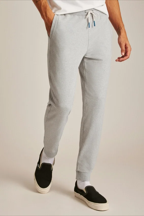 Pantalon de survêtement polyvalent pour homme, confectionné en tissu French Terry extensible et léger, doté d’une ceinture côtelée, d’une poche arrière et d’un cordon de serrage dans la ceinture élastique. Achetez-le dès maintenant !