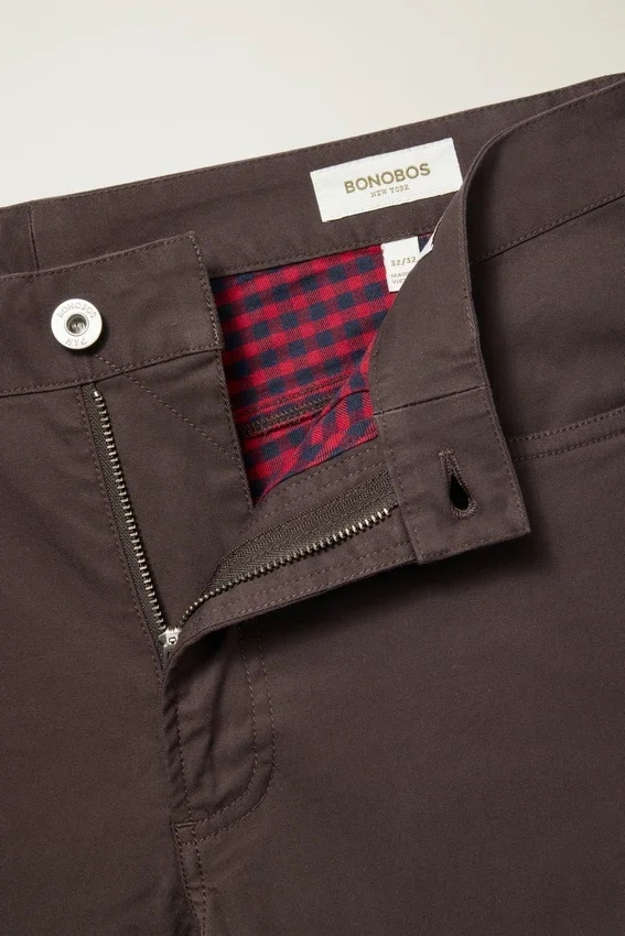 Tissu extérieur uni avec doublure à carreaux teints dans la masse inspirée des fêtes | Tige métallique griffée | Braguette zippée avec fermeture à boutons | Poches à carreaux