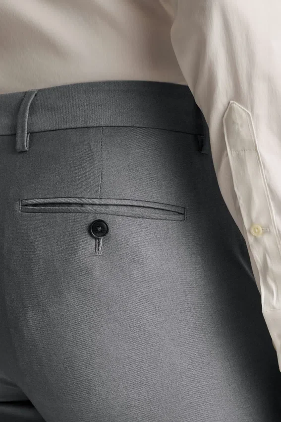 Laine Super 150S de la filature Fratelli Tallia Di Delfino en Italie | Fermeture à crochet et barre à l’avant avec bouton de maintien en nacre véritable | Jambes doublées en Bemberg sous le genou | Ajustable à la taille pour une coupe personnalisée