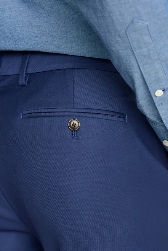 Laine Super 150S de la filature Fratelli Tallia Di Delfino en Italie | Fermeture à crochet et barre à l’avant avec bouton de maintien en nacre véritable | Jambes doublées en Bemberg sous le genou | Ajustable à la taille pour une coupe personnalisée