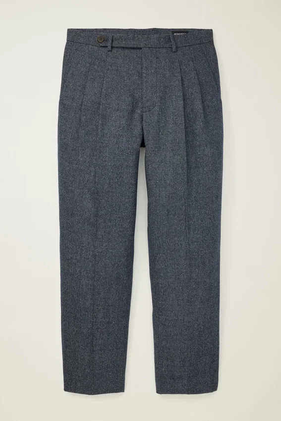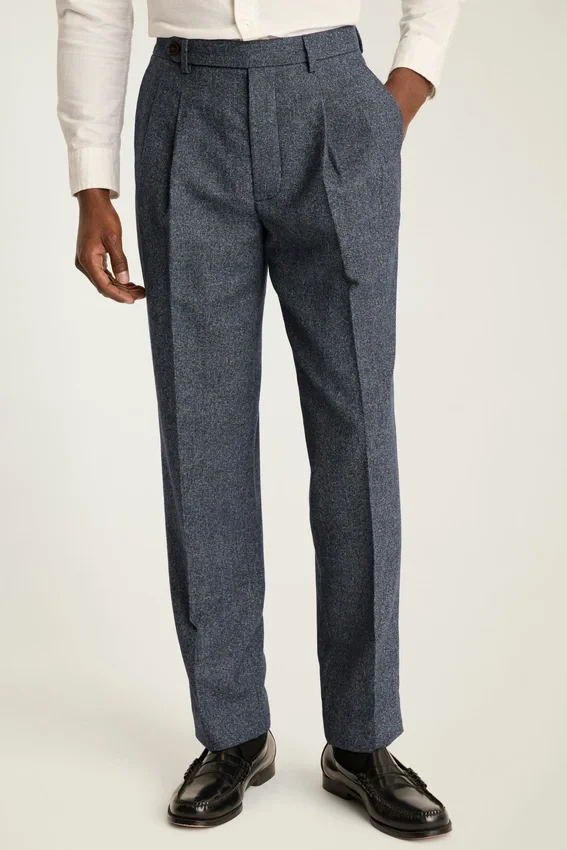 Ajoutez une touche de sophistication à votre garde-robe avec notre pantalon en laine à plis, conçu pour un look vintage. Parfaitement ajusté pour allier élégance et confort.