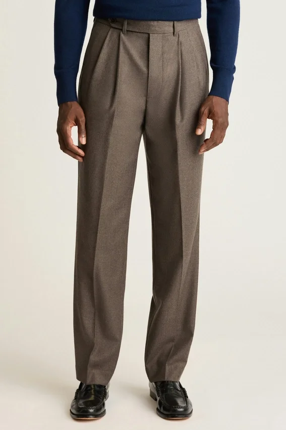 Flanelle de laine italienne haut de gamme avec des plis élégants qui apportent une touche de sophistication du milieu du siècle.