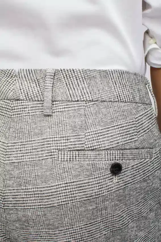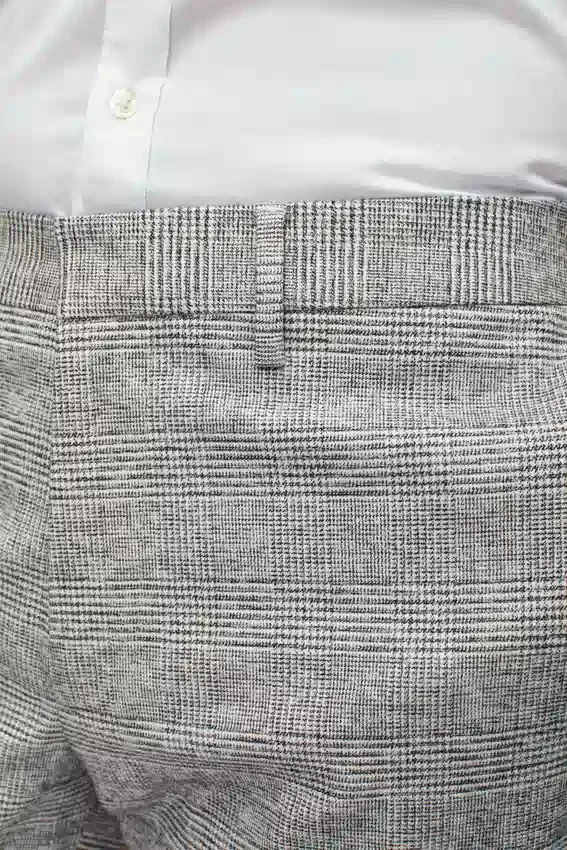 Twill de coton haut de gamme tissé en Italie par la filature Manteco | Ceinture profilée signature | Fermeture à crochet et barre à l’avant | Poches avant épurées sur les coutures avec une construction spéciale du fond de poche pour minimiser l’ouverture | Poches arrière passepoilées avec boutons | Poche à monnaie sur la ceinture avant | Encoche arrière | Ourlet invisible | Ceinture intérieure haut de gamme de fabrication italienne