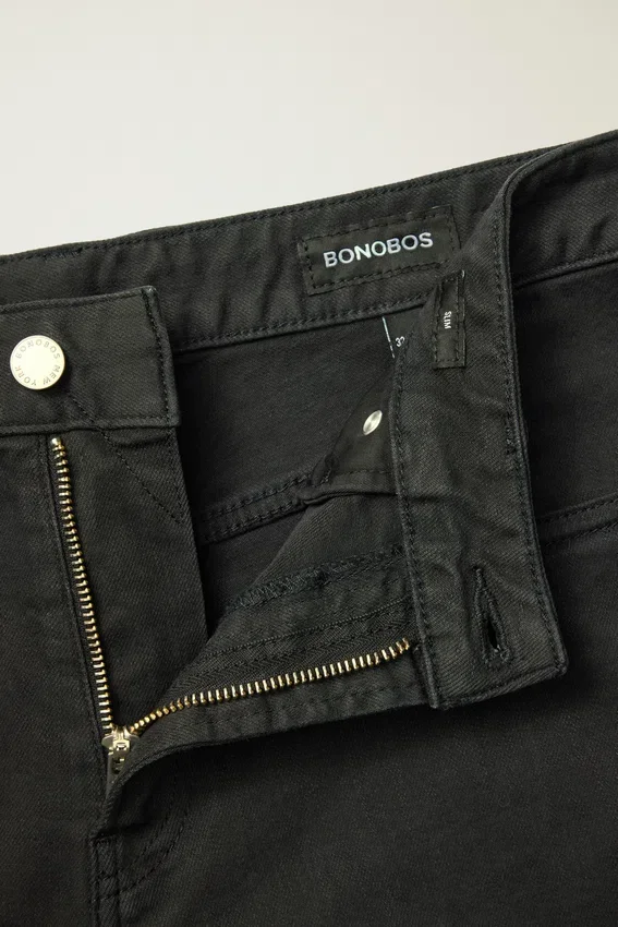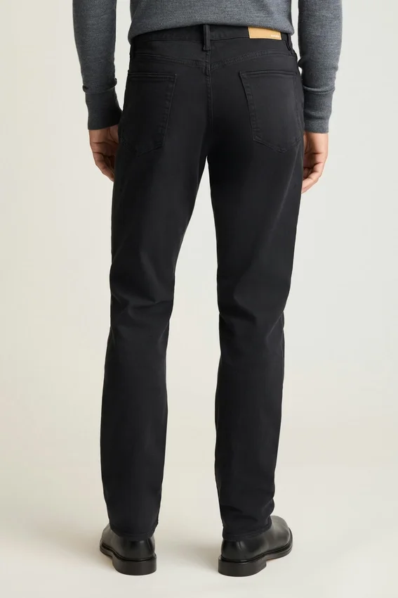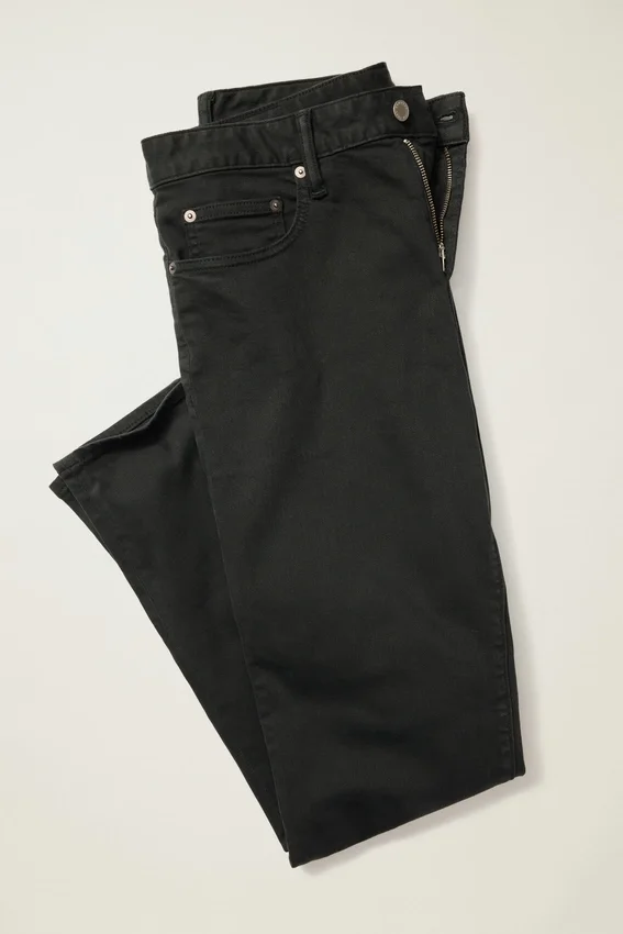 Coton ultra-extensible | Teint en pièce | Style 5 poches | Curved Waistband emblématique | Accessoires métalliques issus de sources responsables | Étiquette en papier certifiée Oeko-Tex et FSC
