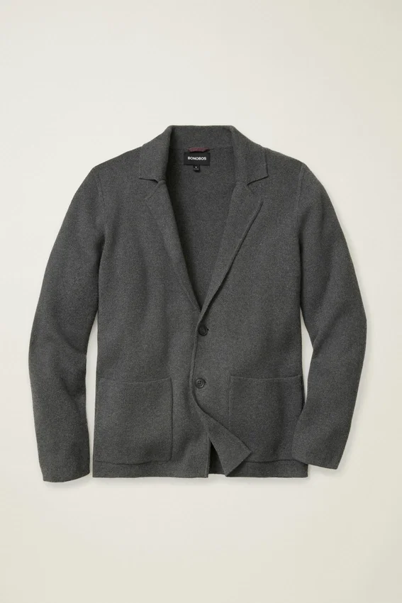 Fil de coton doux avec une touche de laine pour plus de chaleur | Silhouette classique de blazer avec col, des poches et une fermeture à boutons sur le devant | Boucle de suspension à l’arrière du cou